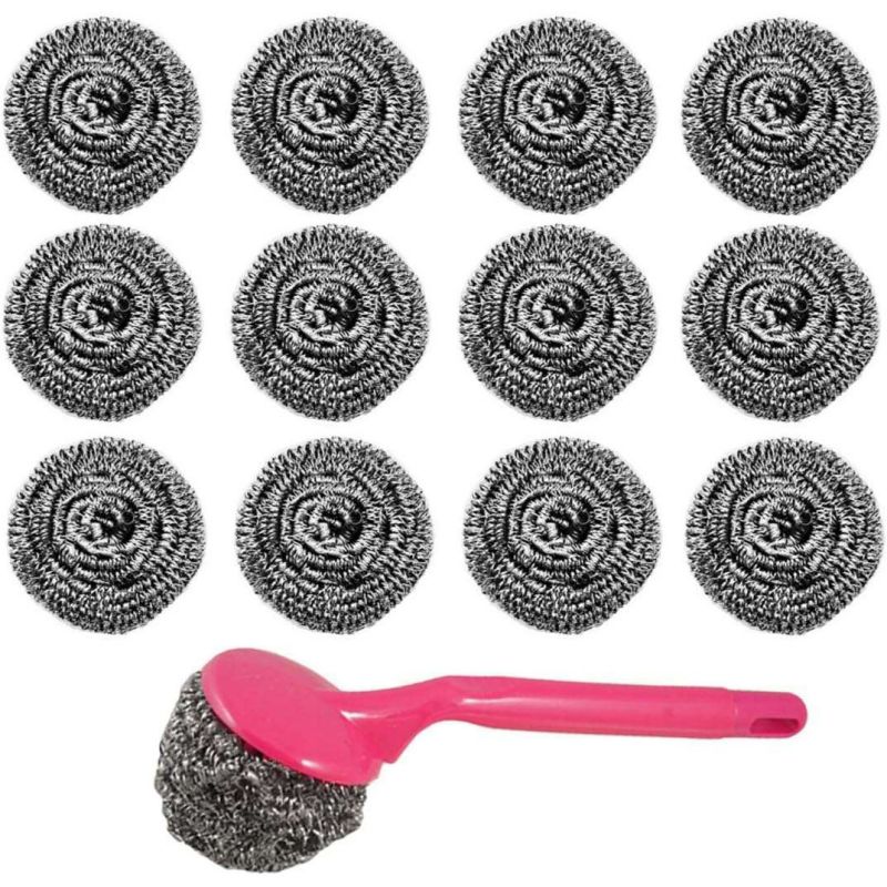 • Spornes de mano de lana de acero: compuestos de alambres finos de acero, ofrecen alta abrasión. Esto los hace ideales para abordar la grasa obstinada, quemada, en comida y óxido. Sin embargo, pueden rayar superficies delicadas como utensilios de cocina que no son de palo o porcelana fina. Se usan con frecuencia en cocinas para limpiar macetas, sartenes y estufas.